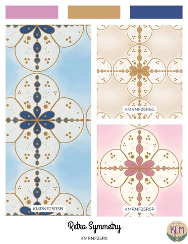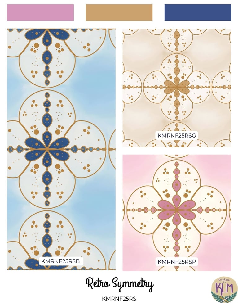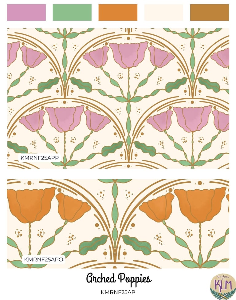 The Retro Nouveau Florals collection was inspired by the theme of the Retro Nouveau Spoonflower Challenge. I took bright but muted colors with gold accents, and created a medley of retro style florals. The watercolor brushes used helped me convey better color and texture.